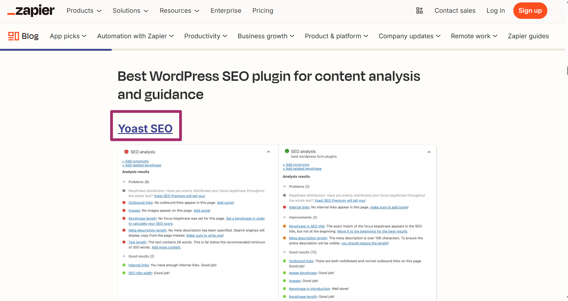 For example, below is a screenshot from a Zapier blog post that links to the Yoast SEO plugin landing page in the blog.