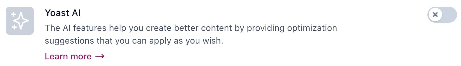 | You’ve reached the rate limit for today | You have hit the rate limits for using the AI features set by Yoast SEO | Spread out your requests for AI Generate and AI Optimize. For more information, see also Rate limits for the AI features in Yoast SEO |