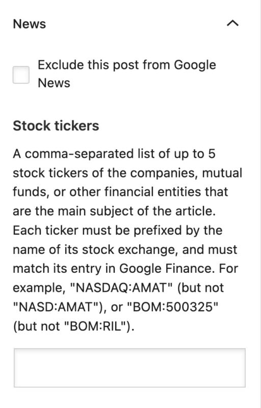 The News SEO plugin for Yoast SEO helps you optimize your site for Google News. It creates XML News Sitemaps so Google can pick up on new articles as soon as possible, and it helps you optimize some of the more advanced XML News sitemap options like stock tickers.