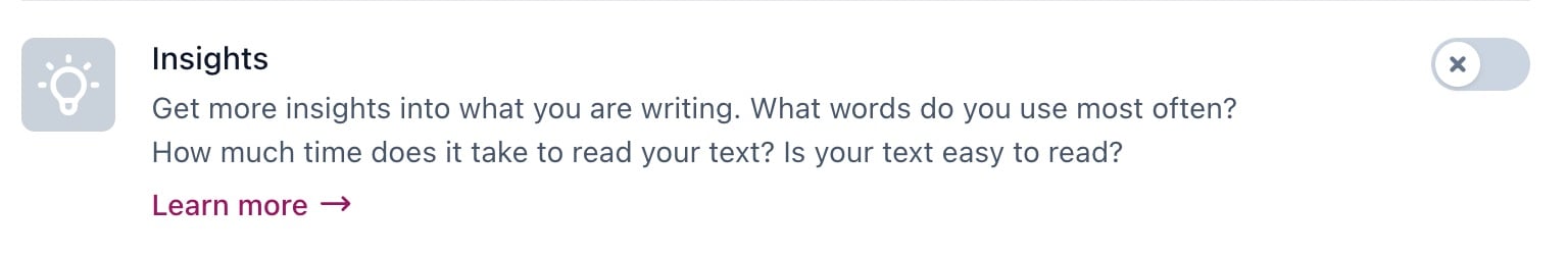 - Under Content optimization, toggle the Insights switch to Off