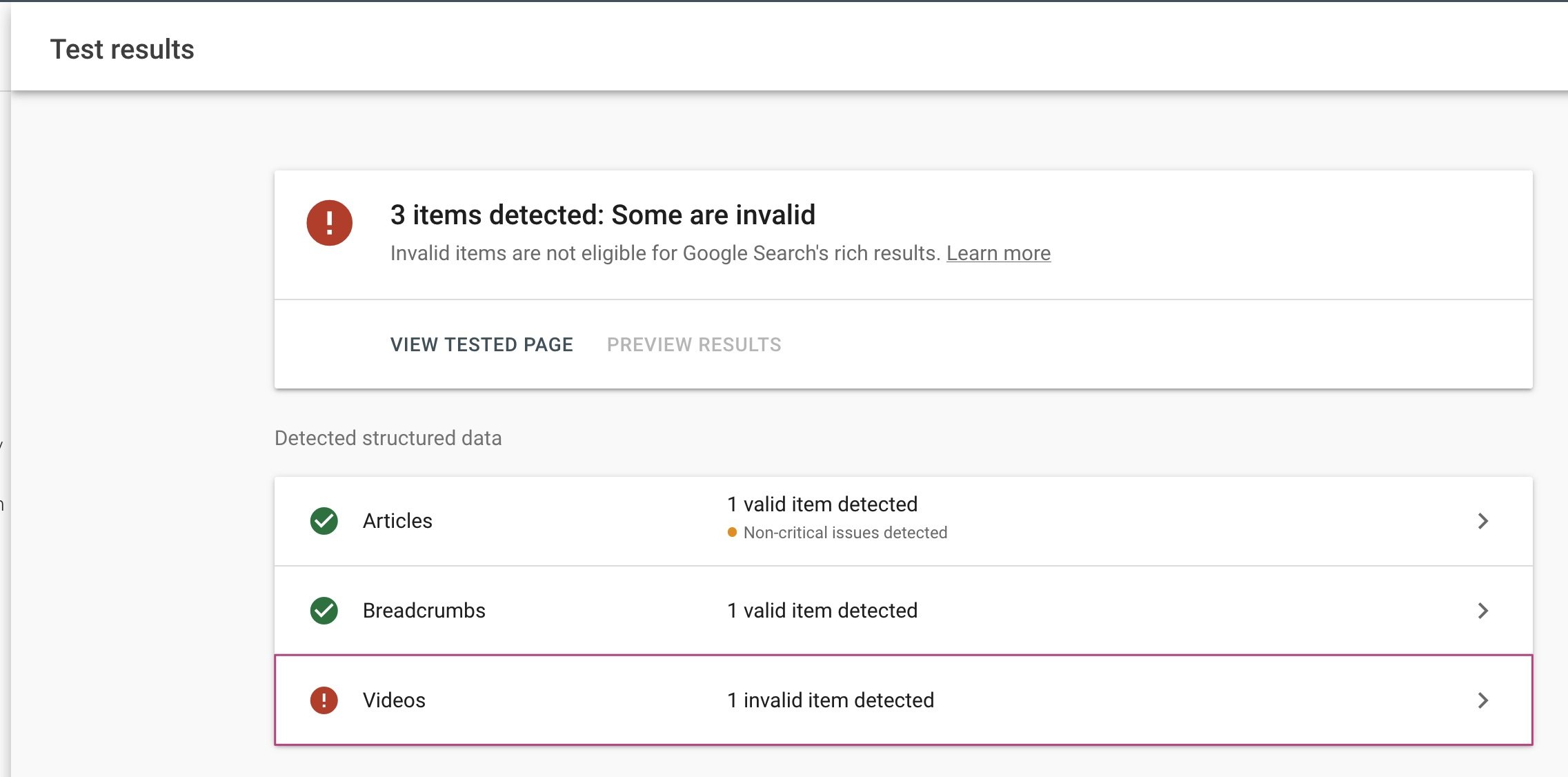 Google Search Console notifies webmasters of issues with their video schema. If your site’s video schema report shows errors, we’ll help you determine where the issue occurs and what support team can help you resolve the issue. We will use the term ‘error’ throughout this article but please note that the same process can be used for warnings that appear in Google Search Console. I