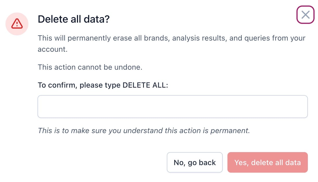 - Type DELETE ALL and click Yes, delete all data to confirm