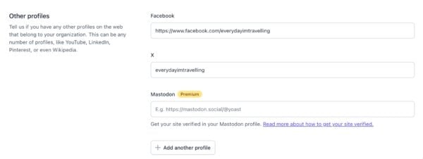 Make sure to also add your other profiles under Site representation. The plugin will use that information to let search engines know which profiles are associated with your site.