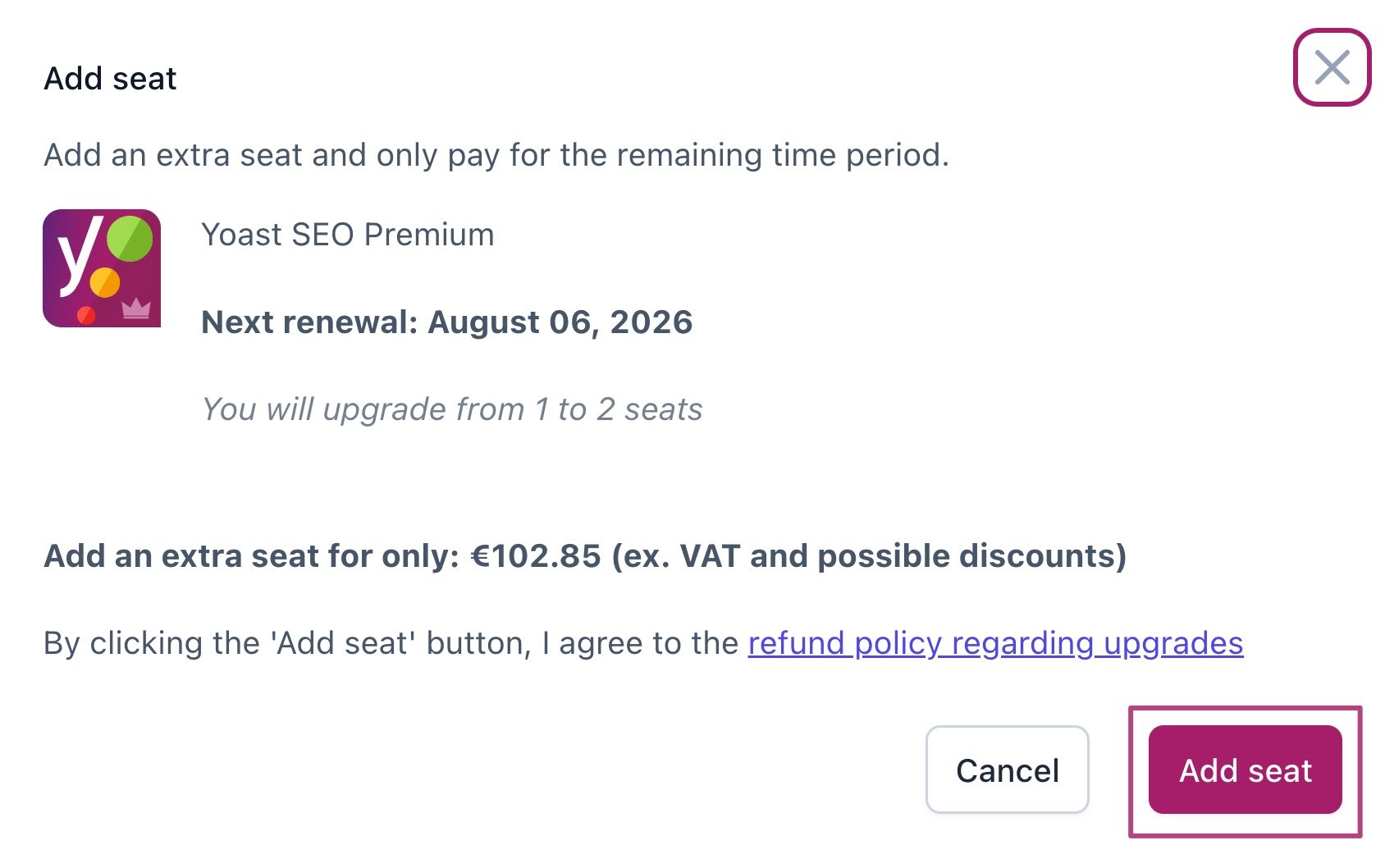Do you already have a Yoast product installed, such as Yoast SEO Premium? It’s possible to upgrade to the Yoast WooCommerce SEO subscription, or to add another seat to your existing subscription. If you upgrade to a bundle, your subscription duration is shortened automatically, but there are no additional costs. If you want to add a seat to a current product subscription, you In this article, we’ll first explain what bundles are available. In addition, we’ll show you how to upgrade to a bundle, and how to add a seat to a product subscription.