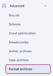 Yoast SEO settings: Format archives