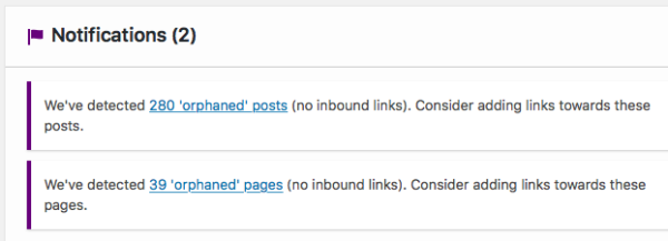 You’ll receive a notification in your SEO dashboard if your site has orphaned content.