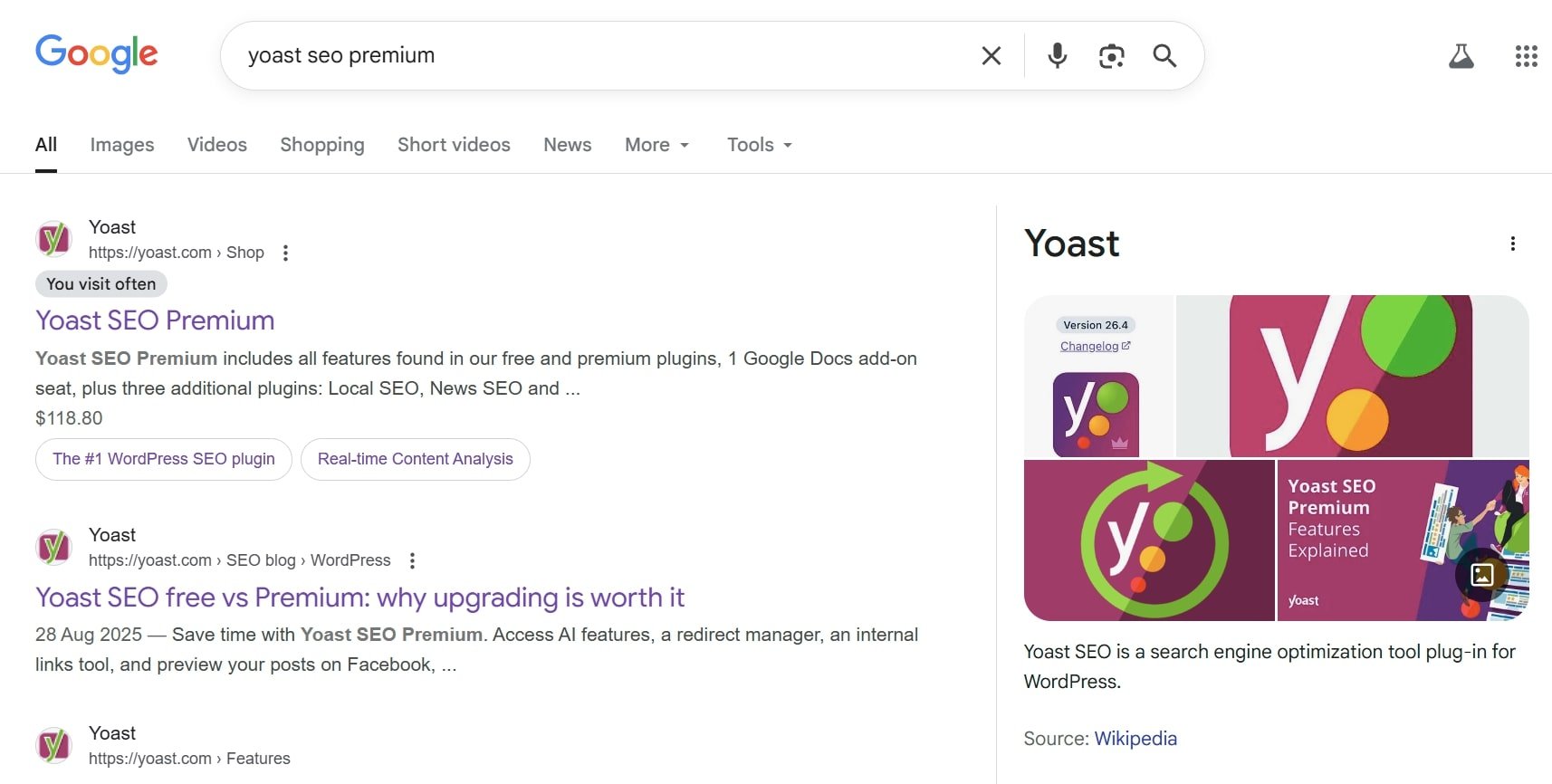 An example from the past: our old Google Analytics plugin once ranked well for the term ‘Google Analytics’. That may sound great, but it did not help us. People searching for ‘Google Analytics’ were trying to reach Google’s website, not our plugin. Ranking for navigational queries only works when users are actually looking for you.